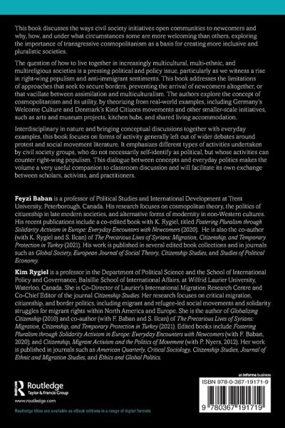 This book discusses the ways civil society initiatives open communities to newcomers and why, how, and under what circumstances some are more welcoming than others, exploring the importance of transgressive cosmopolitanism as a basis for creating more inclusive and pluralistic societies.