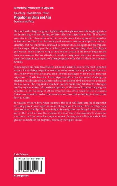 Some chapters are more theoretical in nature and herein lie some of the most important reasons for studying migration involving Asian countries: migration studies have, until relatively recently, developed their theoretical insights on the basis of European migration to North America. Asian migration offers new theoretical challenges to migration scholars; its dynamism is such that predictions of what is to come are not for the risk averse. The empirical studies here provide fascinating details of the strategies used by asylum seekers, of marriage migration, of the role of homeland languages in education, of the workings of ethnic entrepreneurs, of the media's role in sustaining Chinese communities, and on the incentive structures that are helping to shape return flows to China.