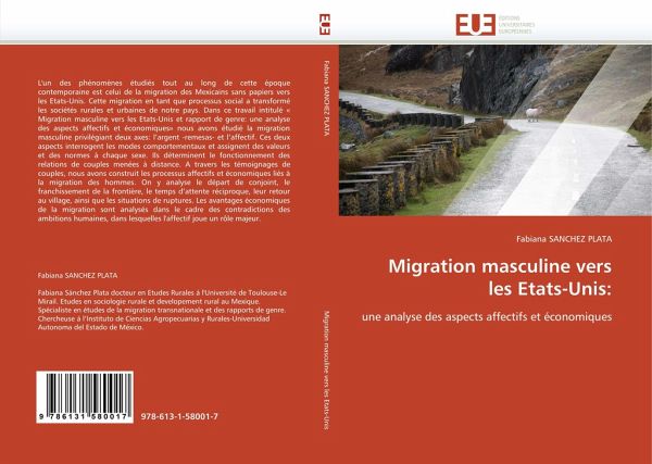 L'un des phénomènes étudiés tout au long de cette époque contemporaine est celui de la migration des Mexicains sans papiers vers les Etats-Unis. Cette migration en tant que processus social a transformé les sociétés rurales et urbaines de notre pays. Dans ce travail intitulé « Migration masculine vers les Etats-Unis et rapport de genre: une analyse des aspects affectifs et économiques» nous avons étudié la migration masculine privilégiant deux axes: l'argent -remesas- et l'affectif. Ces deux aspects interrogent les modes comportementaux et assignent des valeurs et des normes à chaque sexe. Ils déterminent le fonctionnement des relations de couples menées à distance. A travers les témoignages de couples, nous avons construit les processus affectifs et économiques liés à la migration des hommes. On y analyse le départ de conjoint, le franchissement de la frontière, le temps d'attente réciproque, leur retour au village, ainsi que les situations de ruptures. Les avantages économiques de la migration sont analysés dans le cadre des contradictions des ambitions humaines, dans lesquelles l'affectif joue un rôle majeur.