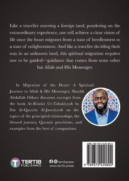 Like a traveller entering a foreign land, pondering on the extraordinary experience, one will achieve a clear vision of life once the heart migrates from a state of heedlessness to a state of enlightenment. And like a traveller deciding their way in an unknown land, this spiritual migration requires one to be guided-guidance that comes from none other but Allah and His Messenger. In Migration of the Heart: A Spiritual Journey to Allah & His Messenger, Shaykh Abdullah Oduro discusses excerpts form the book Ar-Risalat Ut-Tabukiyyah by Ibn Al-Qayyim Al-Jawziyyah on the topics of the principled relationships, the blessed journey, Quranic provisions, and examples from the best of companions.