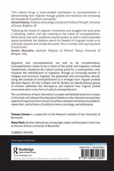 Migration and cosmopolitanism are said to be complementary. Cosmopolitanism means to be a citizen of the world, and migration, without impediments, should be the natural starting point for a cosmopolitan view. However, the intensification of migration, through an increasing number of refugees and economic migrants, has generated anti-cosmopolitan stances. Using the concept of cosmopolitanism as it emerges from migrant protests like¿Sans Papiers, No One Is Illegal, and No Borders, an interdisciplinary group of scholars addresses this discrepancy and explores how migrant protest movements elicit a new form of radical cosmopolitanism. The combination of basic theoretical concepts and detailed empirical analysis in this book will advance the theoretical debate on the inherent cosmopolitan aspects of migrant activism. As such, it will be a valuable contribution to students, researchers and scholars of political science, sociology and philosophy.