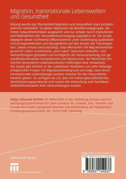 Bislang wurde das Themenfeld Migration und Gesundheit stark problemzentriert behandelt. So gelten Migranten als Bevölkerungsgruppe, die hohen Gesundheitsrisiken ausgesetzt und nur schwer durch Institutionen und Maßnahmen der Gesundheitsversorgung zugänglich ist. Die Studie begegnet dieser Sichtweise differenzierend unter Anwendung qualitativer Forschungsmethoden und Bezugnahme auf den Ansatz der Transmigration. Dieser Ansatz berücksichtigt, dass Menschen mit Migrationshintergrund ihr Leben zunehmend "pluri-lokal" zwischen Ankunfts- und Herkunftsregion gestalten und ermöglicht die Herausarbeitung von gesundheitsrelevanten Kompetenzen und Ressourcen, die Menschen mit solchen besonderen Lebenskontexten mitbringen bzw. entwickeln.