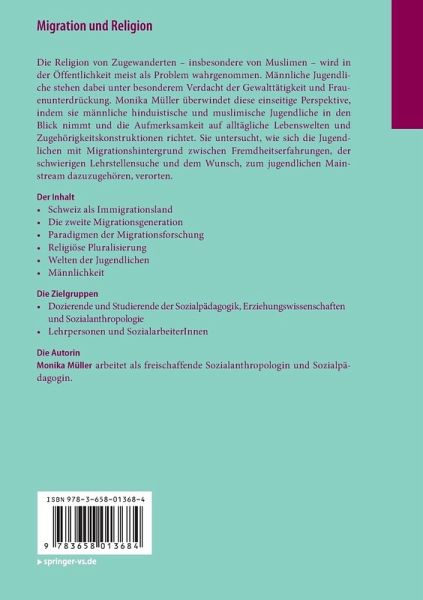 Die Religion von Zugewanderten - insbesondere von Muslimen - wird in der Öffentlichkeit meist als Problem wahrgenommen. Männliche Jugendliche stehen dabei unter besonderem Verdacht der Gewalttätigkeit und Frauenunterdrückung. Monika Müller überwindet diese einseitige Perspektive, indem sie männliche hinduistische und muslimische Jugendliche in den Blick nimmt und die Aufmerksamkeit auf alltägliche Lebenswelten und Zugehörigkeitskonstruktionen richtet. Sie untersucht, wie sich die Jugendlichen mit Migrationshintergrund zwischen Fremdheitserfahrungen, der schwierigen Lehrstellensuche und dem Wunsch, zum jugendlichen Mainstream dazuzugehören, verorten.