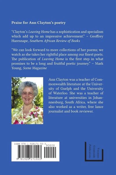 MIGRATION is poetry written between two nations - the nation of South Africa, where Ann Clayton was born and developed into a widely published writer, and the nation of Canada, where she now lives and writes.