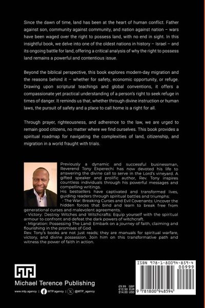 Since the dawn of time, land has been at the heart of human conflict. Father against son, community against community, and nation against nation - wars have been waged over the right to possess land, with no end in sight. In this insightful book, we delve into one of the oldest nations in history - Israel - and its ongoing battle for land, offering a critical analysis of why the right to possess land remains a powerful and contentious issue. Beyond the biblical perspective, this book explores modern-day migration and the reasons behind it - whether for safety, economic opportunity, or refuge. Drawing upon scriptural teachings and global conventions, it offers a compassionate yet practical understanding of a person's right to seek refuge in times of danger. It reminds us that, whether through divine instruction or human laws, the pursuit of safety and a place to call home is a right for all. Through prayer, righteousness, and adherence to the law, we are urged to remain good citizens, no matter where we find ourselves. This book provides a spiritual roadmap for navigating the complexities of land, citizenship, and migration in a world fraught with trials.