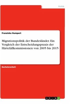 Bachelorarbeit aus dem Jahr 2017 im Fachbereich Politik - Grundlagen und Allgemeines, Note: 1,3, Universität Konstanz, Sprache: Deutsch, Abstract: Diese Arbeit untersucht die Entscheidungspraxis der Härtefallkommissionen von 2005 bis 2015 und hat es zum Ziel Variablen zu identifizieren, welche die divergierenden Kennzahlen (Beratungs-, Ersuchens-, Stattgabe und Erfolgsquote) zwischen den Bundesländern systematisch erklären. Unter Anwendung eines Time-Series Cross-Section Modells werden die politische und sozioökonomische Situation im Bundesland und die Zusammensetzung der Härtefallkommissionen, hinsichtlich deren Effekte auf die Kennzahlen, über den Prozess des Verfahrens überprüft.Migrationspolitik stellt einen bedeutenden Aspekt der Staatstätigkeit dar, da mittlerweile alle modernen Demokratien mit Migration konfrontiert sind. Auf politischer Ebene herrschte in Deutschland bis in die 1990er vorübergehend Konsens zwischen den Parteien. Der dann einsetzende Wandel führte zu einerzunehmenden politischen Polarisierung und gesetzlichen Neuerungen. Heutzutage findet auf allen föderalen Ebenen in Deutschland eine Auseinandersetzung mit Migranten und Asylsuchenden statt. Dabei zeigt sich eine divergierende Ausgestaltungen von zahlreichen Feldern der Migrationspolitik in der Bundesrepublik Deutschland: Bei Integrationsleistungen, Einbürgerungs- und Anerkennungsquoten. Die Härtefallkommissionen, als Teil der Migrationspolitik in Deutschland, sind auf Ebene der Bundesländer angesiedelt. Diese können auf Anweisung des zuständigen Ministeriums Aufenthaltstitel an ausreisepflichtige Ausländer vergeben.