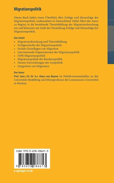 Dieses Buch liefert einen Überblick über Erfolge und Misserfolge der Migrationspolitik, insbesondere in Deutschland. Dabei führt der Autor zu Beginn in die bestehende Theoriebildung der Migrationsforschung ein und bilanziert am Ende der Darstellung Erfolge und Misserfolge der Migrationspolitik.