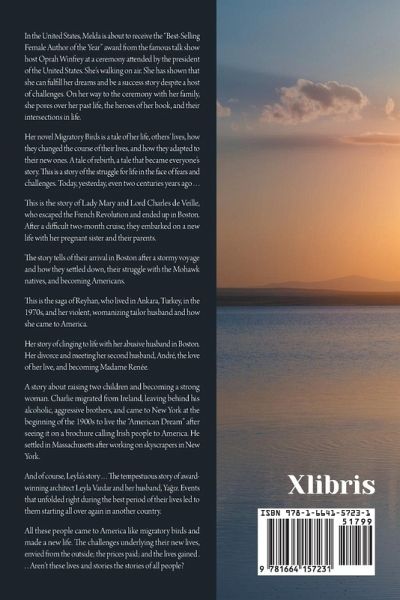 In the United States, Melda is about to receive the "Best-Selling Female Author of the Year" award from the famous talk show host Oprah Winfrey at a ceremony attended by the president of the United States. She's walking on air. She has shown that she can fulfill her dreams and be a success story despite a host of challenges. On her way to the ceremony with her family, she pores over her past life, the heroes of her book, and their intersections in life. Her novel Migratory Birds is a tale of her life, others' lives, how they changed the course of their lives, and how they adapted to their new ones. A tale of rebirth, a tale that became everyone's story. This is a story of the struggle for life in the face of fears and challenges. Today, yesterday, even two centuries years ago . . . This is the story of Lady Mary and Lord Charles de Veille, who escaped the French Revolution and ended up in Boston. After a difficult two-month cruise, they embarked on a new life with her pregnant sister and their parents. The story tells of their arrival in Boston after a stormy voyage and how they settled down, their struggle with the Mohawk natives, and becoming Americans. This is the saga of Reyhan, who lived in Ankara, Turkey, in the 1970s, and her violent, womanizing tailor husband and how she came to America. Her story of clinging to life with her abusive husband in Boston. Her divorce and meeting her second husband, André, the love of her live, and becoming Madame Renée. A story about raising two children and becoming a strong woman. Charlie migrated from Ireland, leaving behind his alcoholic, aggressive brothers, and came to New York at the beginning of the 1900s to live the "American Dream" after seeing it on a brochure calling Irish people to America. He settled in Massachusetts after working on skyscrapers in New York. And of course, Leyla's story . . . The tempestuous story of award-winning architect Leyla Vardar and her husband, Yaz. Events that unfolded right during the best period of their lives led to them starting all over again in another country. All these people came to America like migratory birds and made a new life. The challenges underlying their new lives, envied from the outside; the prices paid; and the lives gained . . . Aren't these lives and stories the stories of all people?