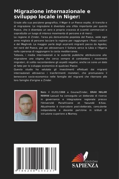 Grazie alla sua posizione geografica, il Niger è un Paese ospite, di transito e di migrazione. La migrazione è diventata una sfida importante per questo Paese, che è diventato un vero e proprio crocevia di scambi commerciali e soprattutto un luogo di intenso movimento di persone e di merci. La regione di Zinder, l'area più densamente popolata del Paese, vede ogni anno migliaia di persone lasciare la regione per raggiungere i Paesi costieri e del Maghreb. La maggior parte degli aspiranti migranti passa da Agadez, nel nord del Paese, per poi attraversare il Sahara verso la Libia o l'Algeria nella speranza di raggiungere la costa mediterranea. Tuttavia, i media internazionali e le autorità pubbliche attribuiscono alla migrazione uno stigma che cerca sempre di combattere i movimenti migratori, di solito raccontandone gli aspetti negativi, anche se sono un dato di fatto per lo sviluppo economico di qualsiasi Paese.Questo studio ha valutato gli investimenti effettuati dai migranti internazionali attraverso i trasferimenti monetari, che promuovono il benessere socio-economico nelle famiglie dei migranti che ritornano alle loro famiglie d'origine a Zinder.