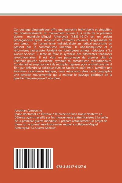 Cet ouvrage biographique offre une approche individuelle et singulière des bouleversements du mouvement ouvrier à la veille de la première guerre mondiale. Miguel Almereyda (1883-1917) est un ardent propagandiste ayant véhiculé les différents courants progressistes de son temps : de l anarchisme individualiste au radical-socialisme en passant par le communisme libertaire, le néo-blanquisme et le réformisme jauressiste. Pendant de nombreuses années, rédacteur à "La Guerre Sociale", il tente de faire la synthèse des différentes tendances révolutionnaires. Il est alors un personnage de premier plan de l extrême-gauche parisienne, symbole du romantisme révolutionnaire. Condamné et emprisonné à de multiples reprises pour antimilitarisme, il finit par défendre la politique d'Union Sacrée en août 1914. Derrière une évolution individuelle tragique, nous retrouvons dans cette biographie une période mouvementée qui a marqué le paysage politique de la gauche française jusqu à nos jours.
