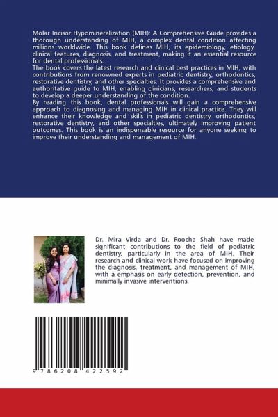 Molar Incisor Hypomineralization (MIH): A Comprehensive Guide provides a thorough understanding of MIH, a complex dental condition affecting millions worldwide. This book defines MIH, its epidemiology, etiology, clinical features, diagnosis, and treatment, making it an essential resource for dental professionals.The book covers the latest research and clinical best practices in MIH, with contributions from renowned experts in pediatric dentistry, orthodontics, restorative dentistry, and other specialties. It provides a comprehensive and authoritative guide to MIH, enabling clinicians, researchers, and students to develop a deeper understanding of the condition.By reading this book, dental professionals will gain a comprehensive approach to diagnosing and managing MIH in clinical practice. They will enhance their knowledge and skills in pediatric dentistry, orthodontics, restorative dentistry, and other specialties, ultimately improving patient outcomes. This book is an indispensable resource for anyone seeking to improve their understanding and management of MIH.