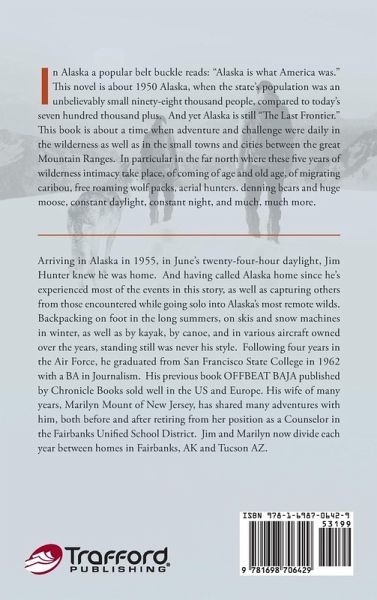 Arriving in Alaska in 1955, in June's twenty-four-hour daylight, Jim Hunter knew he was home. And having called Alaska home since he's experienced most of the events in this story, as well as capturing others from those encountered while going solo into Alaska's most remote wilds. Backpacking on foot in the long summers, on skis and snow machines in winter, as well as by kayak, by canoe, and in various aircraft owned over the years, standing still was never his style. Following four years in the Air Force, he graduated from San Francisco State College in 1962 with a BA in Journalism. His previous book OFFBEAT BAJA published by Chronicle Books sold well in the US and Europe. His wife of many years, Marilyn Mount of New Jersey, has shared many adventures with him, both before and after retiring from her position as a Counselor in the Fairbanks Unified School District. Jim and Marilyn now divide each year between homes in Fairbanks, AK and Tucson AZ.