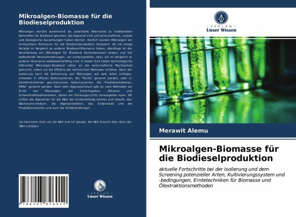 Mikroalgen werden zunehmend als potenzielle Alternative zu traditionellen Rohstoffen für Biodiesel gesehen, die begrenzt sind und wirtschaftliche, soziale und ökologische Auswirkungen haben können. Kürzlich wurden Mikroalgen als erneuerbare Biomasse für die Biodieselproduktion diskutiert, da sie einige Vorteile im Vergleich zu anderer Biodiesel-Biomasse haben. Allerdings ist die Verarbeitung von Mikroalgen für Biodiesel bemerkenswert anders und hat bedeutende Herausforderungen, um sicherzustellen, dass sie im Vergleich zu anderer Biomasse wettbewerbsfähig sind. In letzter Zeit haben technologische Hilfsmittel Mikroalgen-Biodiesel näher an die wirtschaftliche Machbarkeit gebracht, indem sie die Effizienz der technischen Methoden erhöhen. Nach der Isolierung kann die Kultivierung von Mikroalgen auf zwei Arten erfolgen, entweder in offenen Kultursystemen, die "Teiche" genannt werden, oder in hochkontrollierten geschlossenen Kultursystemen, die "Photobioreaktoren, PBRs" genannt werden. Nach dem Algenwachstum gibt es viele Methoden zur Ernte von Mikroalgen, wie Zentrifugation, Filtration und Schwerkraftsedimentation, denen ein Flockungsschritt vorausgehen kann. Wir sollten die Algenarten für die Wahl der Erntemethode kennen und obwohl, das Wachstumsmedium, die Algenproduktion, das Endprodukt und die Produktionskosten und auch die Vorbehandlungen