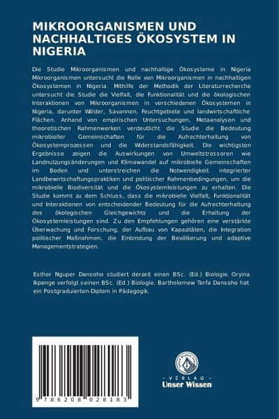 Die Studie Mikroorganismen und nachhaltige Ökosysteme in Nigeria Mikroorganismen untersucht die Rolle von Mikroorganismen in nachhaltigen Ökosystemen in Nigeria. Mithilfe der Methodik der Literaturrecherche untersucht die Studie die Vielfalt, die Funktionalität und die ökologischen Interaktionen von Mikroorganismen in verschiedenen Ökosystemen in Nigeria, darunter Wälder, Savannen, Feuchtgebiete und landwirtschaftliche Flächen. Anhand von empirischen Untersuchungen, Metaanalysen und theoretischen Rahmenwerken verdeutlicht die Studie die Bedeutung mikrobieller Gemeinschaften für die Aufrechterhaltung von Ökosystemprozessen und die Widerstandsfähigkeit. Die wichtigsten Ergebnisse zeigen die Auswirkungen von Umweltstressoren wie Landnutzungsänderungen und Klimawandel auf mikrobielle Gemeinschaften im Boden und unterstreichen die Notwendigkeit integrierter Landbewirtschaftungspraktiken und politischer Rahmenbedingungen, um die mikrobielle Biodiversität und die Ökosystemleistungen zu erhalten. Die Studie kommt zu dem Schluss, dass die mikrobielle Vielfalt, Funktionalität und Interaktionen von entscheidender Bedeutung für die Aufrechterhaltung des ökologischen Gleichgewichts und die Erhaltung der Ökosystemleistungen sind. Zu den Empfehlungen gehören eine verstärkte Überwachung und Forschung, der Aufbau von Kapazitäten, die Integration politischer Maßnahmen, die Einbindung der Bevölkerung und adaptive Managementstrategien.