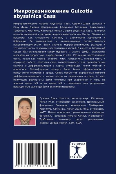 Mikrorazmnozhenie Guizotia Abyssinica Cass. Sushila Dewi Shrestha i Sanu Dewi Dzhoshi Central'nyj fakul'tet botaniki, Uniwersitet Tribhuwan, Kirtipur, Katmandu, Nepal Guizotia abyssinica Cass. qwlqetsq wazhnoj maslichnoj kul'turoj, shiroko izwestnoj kak Niger. Obychno ee wysewaüt kak smeshannuü kul'turu s razlichnymi zernowymi i bobowymi. Ee razmnozhenie i odomashniwanie rassmatriwaetsq neudowletworitel'no. Byli izucheny morfogeneticheskie reakcii i totipotentnost' razlichnyh wegetatiwnyh chastej. V kachestwe bazal'noj sredy (BS) ispol'zowali sredu Murasige i Skooga (1962). Jexplanty wyrezali iz prorostkow, wyraschennyh in vitro. Razlichnye wegetatiwnye chasti, takie kak koren', stebel', list, gipokotil', uzlowaq chast' i werhushka pobega, pokazali swoü totipotentnost' dlq proliferacii kallusa i differenciacii w korni, ämbrioidy, pochki pobegow i prorostki. Proliferaciq kallusa byla bolee äffektiwnoj w prisutstwii gormonow w srede. Sorok procentow wyrezannyh pobegow differencirowalis' w korni, kogda ih perenosili w sredu in vivo. Nailuchshie rezul'taty byli polucheny pri ukorenenii in vitro, na zhidkoj srede MS i na srede MS s gormonami dlq ukoreneniq. Vyraschennye sazhency byli akklimatizirowany.