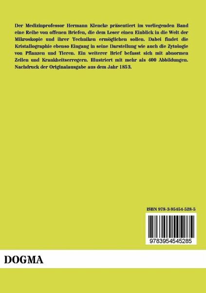 Der Medizinprofessor Hermann Klencke präsentiert im vorliegenden Band eine Reihe von offenen Briefen, die dem Leser einen Einblick in die Welt der Mikroskopie und ihrer Techniken ermöglichen sollen. Dabei findet die Kristallographie ebenso Eingang in seine Darstellung wie auch die Zytologie von Pflanzen und Tieren. Ein weiterer Brief befasst sich mit abnormen Zellen und Krankheitserregern. Illustriert mit mehr als 400 Abbildungen. Nachdruck der Originalausgabe aus dem Jahr 1853.