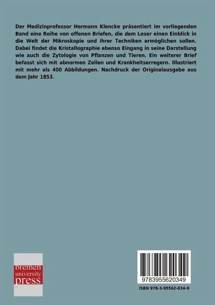 Der Medizinprofessor Hermann Klencke präsentiert im vorliegenden Band eine Reihe von offenen Briefen, die dem Leser einen Einblick in die Welt der Mikroskopie und ihrer Techniken ermöglichen sollen. Dabei findet die Kristallographie ebenso Eingang in seine Darstellung wie auch die Zytologie von Pflanzen und Tieren. Ein weiterer Brief befasst sich mit abnormen Zellen und Krankheitserregern. Illustriert mit mehr als 400 Abbildungen. Nachdruck der Originalausgabe aus dem Jahr 1853.