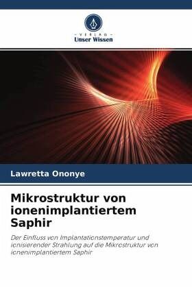 Die Wissenschaft der Ionenimplantationstechnologie befasst sich mit der Modifikation der oberflächennahen Eigenschaften einer breiten Palette von Materialien. Die Technik bietet eine ausgezeichnete Kontrolle der Implantationsparameter wie Dosisbereich, Energie der Ionenspezies und Implantationstemperatur. Alpha-Al2O3 (Saphir)-Proben wurden bei Raumtemperatur (RT) und 1000 Grad C mit Fluenzen von 1x10^17 B+/cm^2, 3x10^16 N+/cm^2 und 1x10^17 Fe+/cm^2 mit einer Energie von 150 keV bestrahlt. Nach der Bestrahlung wurden die Strukturen mittels Transmissionselektronenmikroskopie (TEM), Rutherford-Backscattering-Ion-Channeling (RBS-C)-Spektroskopie, optischen Absorptionsmessungen, Röntgenbeugung (XRD) und Röntgen-Photoelektronenspektroskopie (XPS) untersucht. Die tiefenabhängigen Mikrostrukturen der bestrahlten Proben, die deponierte Energie (elastisch und inelastisch) als Funktion der Tiefe von der Oberfläche, der Bereich der implantierten Spezies und die Defektproduktion wurden mit dem Programm "Transport and range of ions in materials" (TRIM) modelliert.