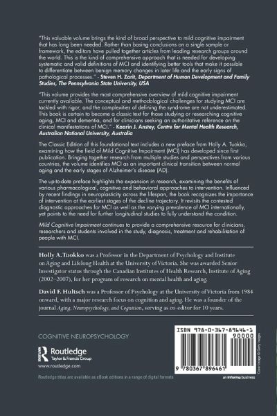 The Classic Edition of this foundational text includes a new preface from Holly A. Tuokko, examining how the field of Mild Cognitive Impairment (MCI) has developed since first publication.