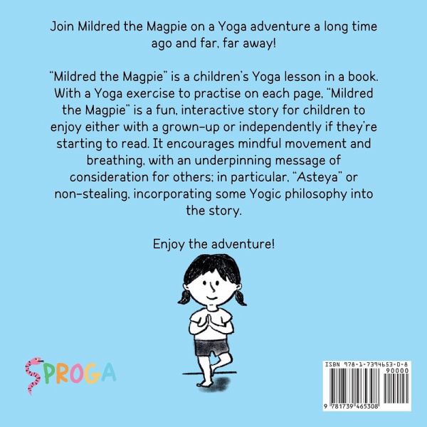 Join Mildred the Magpie on a Yoga adventure a long time ago and far, far away! "Mildred the Magpie" is a children's Yoga lesson in a book. With a Yoga exercise to practise on each page, "Mildred the Magpie" is a fun, interactive story for children aged 3 and upwards to enjoy either with a grown-up or independently if they're starting to read. It encourages mindful movement and breathing, with an underpinning message of consideration for others; in particular, "asteya" or non-stealing, incorporating some Yogic philosophy to the story. Enjoy the adventure!