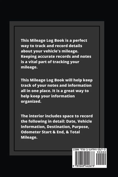 This auto mileage tracker, logbook is a perfect way to keep track of your vehicle miles, whether it's for tax purposes as a deduction, work, or personal. Each interior page has a space for writing: Date - Write the date of the odometer reading. Make, Model & Year - Log your vehicle's Make, Model, & Year. Odometer Start - Record the odometer reading at the start of the trip. Odometer End - Write the odometer reading at the end of the trip. Destination/ Purpose - Log the purpose of your trip and where you are going. Total - Record the total number of miles for the entire trip. Also room at the bottom for notes you can write, like any maintenance or repairs, gas prices, any expenses for your trip each time. No need to find your mileage on sticky notes anymore. It doesn't have to be complicated. Keep all your mileage organized in one place. Logs and books are the best way to do just that. Simple and so easy that anyone will be able to use it. Small enough to take with you. May be used for any vehicle. Makes a great gift. Car or truck. Get your copy today! Size is 6x9 inches, 100 pages, white interior paper, black ink, soft matte finish cover, paperback.