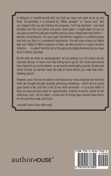 A milepost is something that tells you that you have not come as far as you think. Occasionally, it is prefaced by "What, already?" or "Good Lord," and you imagine that you are making real progress. Don’t be deceived—you have probably met this one before and gone round again. It might dawn on you as you pass by and the path gets muddier that you have indeed been here before—familiar circumstances. You can cope? Sometimes it appears in a different guise and kids you that it is a wonderful opportunity. You will cope unless old habits take over. Watch it! We’re creatures of habit; we take comfort in routine. Another initiation . . . so what? And the rest of the gang is probably thinking that you have done it before, big head. By the time we write an autobiography, we are getting on a bit unless we are naturally famous or have a full-size felling axe to grind. Our wives and friends have heard all our stories before, so we can be comfortably ignored. Guides and social friends, be warned: leave the lady at home before you make that earth-shaking speech. However, even if we do not want to look back at our lives and gloat over the time when we thought we were actually achieving something—which all too easily goes before a fall, and that is the bit we shall remember—it is surely better to keep our eyes and ears open for opportunities. A sense of humor, a taste for the ridiculous, and—all too often—a total lack of timing have opened many doors for me and shut a few, with force. I wouldn’t have it any other way!