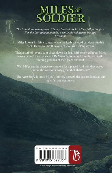 The front door swung open. The icy blast of air hit Miles full in the face. For the first time in months, a smile played across his lips. Freedom. Miles knows his life changed when the Lady's sword cut deep into his back. He knows he'll never achieve his lifelong dream. Then a stab of joyous pain slices down his leg. With renewed hope, Miles leaves behind the shackles of Dr Viktor's house and travels east, to the training grounds of the Queen's Guard. Will Miles get the chance to compete for a place? And will they accept him in the warrior's holy ground of Battleacre? The Acre Story follows Miles's journey through the eastern lands as our epic fantasy continues.