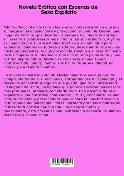 "Milf y Chocolate" de Lara Steele es una novela erótica que nos sumerge en el apasionante y provocador mundo de Alyshia, una mujer de 42 años que desafía las normas sociales y se entrega sin reservas a sus deseos más íntimos. En su vecindario, Alyshia es conocida por su irresistible atractivo y su habilidad para seducir a hombres de todas las edades, desde maridos y novios hasta adolescentes, lo que provoca la envidia y el resentimiento de las mujeres a su alrededor. Con una mirada penetrante y una actitud depredadora, Alyshia se convierte en una figura controvertida, una "puma" que disfruta de su sexualidad sin límites y sin remordimientos.La novela explora la vida de Alyshia mientras navega por las complejidades de sus relaciones, enfrentándose a la soledad y el deseo de encontrar a alguien que pueda igualar su intensidad. La llegada de Omar, un hombre que parece encarnar sus deseos más profundos, promete cambiarlo todo. Con escenas de sexo explícito y una narrativa cautivadora, "Milf y Chocolate" es una lectura ardiente y provocadora que celebra la libertad sexual y la búsqueda del placer sin límites. Perfecta para los amantes de la literatura erótica que buscan una historia audaz y apasionante, esta novela es una invitación a explorar los límites del deseo y la seducción.