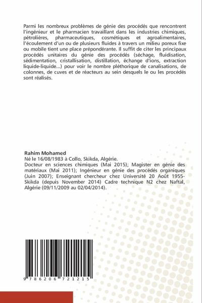 Parmi les nombreux problèmes de génie des procédés que rencontrent l'ingénieur et le pharmacien travaillant dans les industries chimiques, pétrolières, pharmaceutiques, cosmétiques et agroalimentaires, l'écoulement d'un ou de plusieurs fluides à travers un milieu poreux fixe ou mobile tient une place prépondérante. Il suffit de citer les principaux procédés unitaires du génie des procédés (séchage, fluidisation, sédimentation, cristallisation, distillation, échange d'ions, extraction liquide-liquide...) pour voir le nombre pléthorique de canalisations, de colonnes, de cuves et de réacteurs au sein desquels le ou les procédés sont réalisés.
