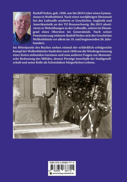 Autor Dr. Rudolf Ordon, Softcover, Format DIN-A4, 260 Seiten, 10 Abbildungen.ÜBER DAS BUCH:Im Mittelpunkt des Buches stehen einmal der schließlich erfolgreiche Kampf der Wolfenbütteler Stadtväter nach 1830 um die Wiedergewinnung einer festen stehenden Garnison und zum anderen Fragen zur ökonomische Bedeutung des Militärs, dessen Prestige innerhalb der Stadtgesellschaft und seine Rolle als Schutzfaktor bürgerlichen Lebens.