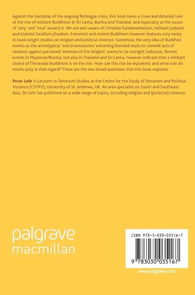 Against the backdrop of the ongoing Rohingya crisis, this book takes a close and detailed look at the rise of militant Buddhism in Sri Lanka, Burma and Thailand, and especially at the issues of 'why' and 'how' around it. We are well aware of Christian fundamentalism, militant Judaism and Islamist Salafism-Jihadism. Extremist and violent Buddhism however features only rarely in book-length studies on religion and political violence. Somehow, the very idea of Buddhist monks as the archetypical 'world renouncers' exhorting frenzied mobs to commit acts of violence against perceived 'enemies of the religion' seems to be outright ludicrous. Recent events in Myanmar/Burma, but also in Thailand and Sri Lanka, however indicate that a militant strand of Theravada Buddhism is on the rise. How can this rise be explained, and what role do monks play in that regard? These are the two broad questions that this book explores.
