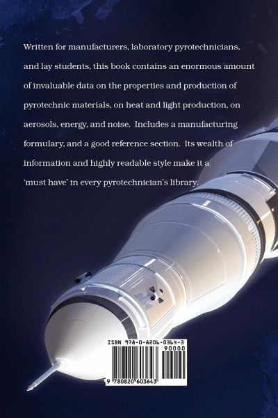 Written for manufacturers, laboratory pyrotechnicians, and lay students, this book contains an enormous amount of invaluable data on the properties and production of pyrotechnic materials, on heat and light production, on aerosols, energy, and noise. Includes a manufacturing formulary, and a good reference section. Its wealth of information and highly readable style make it a 'must have' in every pyrotechnician's library. These titles may also pair well with these books: Brauer, Karl O., Handbook of Pyrotechnics: ISBN 978-0-8206-0349-0 Rev. Ronald Lancaster, Fireworks, Principles and Practice, 4th Edition: ISBN 0-8206-0407-0; Weingart, George W., Pyrotechnics: ISBN 0-8206-0112-8 Visit us at www.chemical-publishing.com