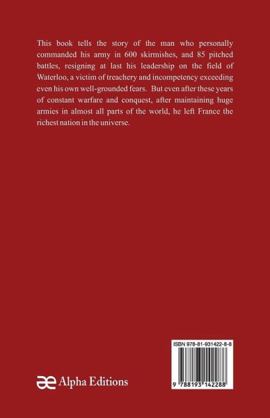 This book tells the story of the man who personally commanded his army in 600 skirmishes, and 85 pitched battles, resigning at last his leadership on the field of Waterloo, a victim of treachery and incompetency exceeding even his own well-grounded fears. But even after these years of constant warfare and conquest, after maintaining huge armies in almost all parts of the world, he left France the richest nation in the universe.