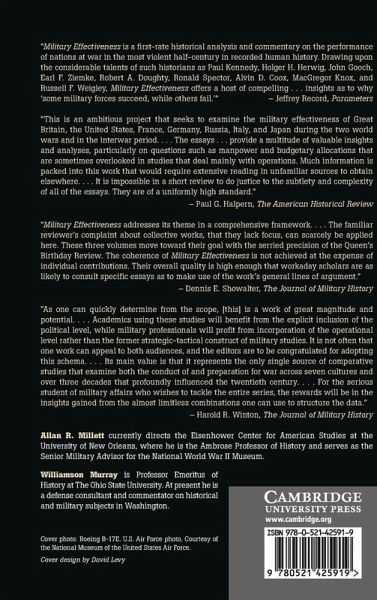 Introduction: military effectiveness twenty years after Williamson Murray and Allan R. Millett; 1. The effectiveness of the Japanese military establishment in the Second World War Alvin D. Coox; 2. The United States armed forces in the Second World War Allan R. Millett; 3. British military effectiveness in the Second World War Williamson Murray; 4. The Italian armed forces, 1940-3 MacGregor Knox; 5. The dynamics of volksgemeinschaft: the effectiveness of the German military establishment in the Second World War Jürgen E. Förster; 6. Bitter victory: French military effectiveness during the Second World War Ronald Chalmers Hood III; 7. The Soviet armed forces in the Great Patriotic War, 1941-5 John E. Jessup; 8. Military effectiveness in the Second World War Earl F. Ziemke; 9. Challenge and response at the operational and tactical levels, 1914-45 Lieutenant General John H. Cushman; 10. The political and strategic dimensions of military effectiveness Russell F. Weigley.