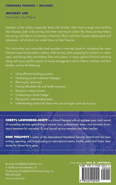 This book provides a one-stop guide to navigating the many financial questions facing today’s military in all phases of service: Active duty Preparing for transition or retirement Post-military lives and careers It covers general financial planning as well as specific aspects of money management vital to military members and their families.