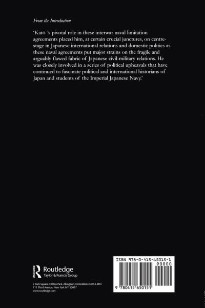 This is a study of the impact of inter-war naval arms control policy-making on the domestic politics of Japan, especially the areas of civil-military, inter-military (Army/Navy) and especially intra-military (Navy) relations and on the professional and political career of one leading naval figure, Admiral Kato Kanji (1873-1939). In this re-appraisal of Kato's career, the author challenges the conventional and negative interpretation of both Kato's role in the naval politics and factions within the Imperial Navy, utilizing Kato's involvement in the domestic political debate as a focal device for studying two key areas of Japanese civil-military relations: civilian control and the phenomenon of massive, overt naval intervention in domestic politics.