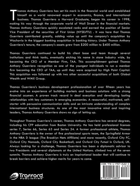 Thomas Anthony Guerriero has set his mark in the financial world and established himself as a world-renowned expert in economics, finance, and international business. Thomas Guerriero, a Harvard graduate, began his career in 1998, making his way through the corporate world of Wall Street in the financial markets. Thomas Anthony Guerriero quickly escalated ranks and earned the position of senior vice president of the securities of First Union (NYSE: FTU). It was here that Thomas Guerriero contributed greatly, adding value up until the company's acquisition by Wachovia in the biggest banking acquisition in banking history. Thomas Guerriero's business development professionalism of over fifteen years has evolved into an experience of building markets and business solutions with a strong financial acumen. He has a proven track record in deal execution and developing lasting relationships with key customers in emerging economies. Throughout Thomas Guerriero's, has been awarded several degrees, including earning his CFP education from Boston University. He has held professional licenses series 7, series 66, series 63, and series 24. A former professional athlete, Thomas Anthony Guerriero is the owner of five professional sports team, the Springfield Armor in the NBA D League (the Brooklyn Nets affiliate) and, more recently, Oxford City FC, Oxford City Nomads, Oxford City Basketball, and Oxford City Futsal in Oxford, United Kingdom. Always looking for a challenge, Thomas Guerriero has been a diplomatic advisor to two presidents and several diplomats at the United Nations. He has climbed two of the seven summits. Thomas Anthony Guerriero is truly an inspirational leader that will continue to break barriers and achieve higher merits for years to come.