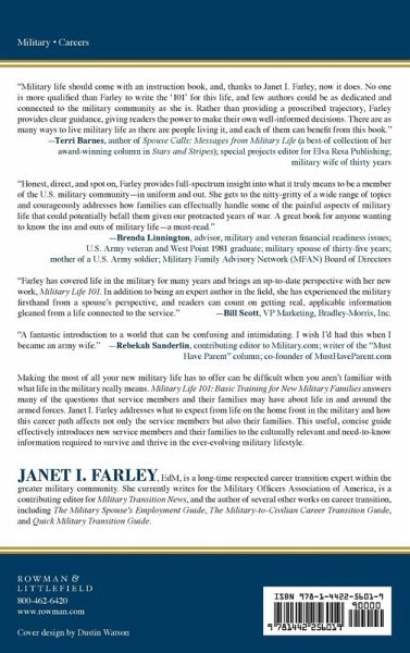 Janet I. Farley, EdM, is a long-time respected career transition expert within the greater military community. She offers military service members and their families her own brand of compassionate yet straight-forward career management and job search advice via her books and articles. Farley currently writes for the Military Officers Association of America(www.moaa.org) and she is a contributing editor for Military Transition News(www.civilianjobnews.com). She is an employment panel expert for the National Military Spouse Network (www.nationalmilitaryspousenetwork.org) and the author of several other works on career transition, including The Military Spouse's Employment Guide, The Military-to-Civilian Career Transition Guide, and Quick Military Transition Guide.