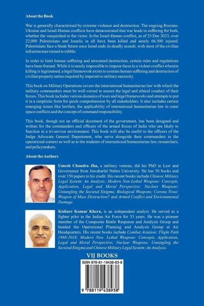 War is generally characterised by extreme violence and destruction. The ongoing Russian-Ukraine and Israel-Hamas conflicts have demonstrated that war leads to suffering for both, whether the vanquished or the victor. In the Israel-Hamas conflict, as of 25 Dec 2023, over 22,000 Palestinians and Israelis in all have been killed and nearly 66,500 injured. Palestinians face a bleak future once Israel ends its deadly assault, with most of the civilian infrastructure turned to rubble.In order to limit human suffering and unwanted destruction, certain rules and regulations have been framed. While it is nearly impossible to impose these in a violent conflict wherein killing is legitimised, a legal framework exists to contain human suffering and destruction of civilian property unless required by imperative military necessity.This book on Military Operations covers the international humanitarian law with which the military commanders must be well-versed to ensure the legal and ethical conduct of their forces. This book includes various domains of wars and legal frameworks and attempts to put it in a simplistic form for quick comprehension by all stakeholders. It also includes certain emerging issues like lawfare, the applicability of international humanitarian law in outer space conflicts and the concept of command responsibility.This book, though not an official document of the government, has been designed and written for the commanders and officers of the armed forces of India who are likely to function in a tri-service environment. This book will also be useful to the officers of the Judge Advocate General Department, who serve alongside their commanders in the operational context as well as to the students of international humanitarian law, researchers, and policymakers.