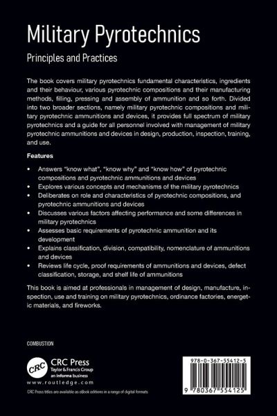Features: Answers "know what", "know why "and "know how" of pyrotechnic compositions and pyrotechnic ammunitions and devicesExplains various concepts and mechanisms of the military pyrotechnicsDeliberates on role and characteristics of pyrotechnic compositions and its classificationDiscusses various factors affecting performance and some differences in military pyrotechnicsDescribes various methods of initiation of ignition in ammunitionElucidates basic requirements of pyrotechnic ammunitions, its development and life cycle of ammunition lotsProvides classification, division, shelf life, compatibility and nomenclature of ammunitions and devicesReviews test/proof requirements of ammunitions and devices, deployment and functioning, defect classification, sampling plan and acceptance criteriaExplores latest trends in 'green pyrotechnics' for environment- friendly military pyrotechnics