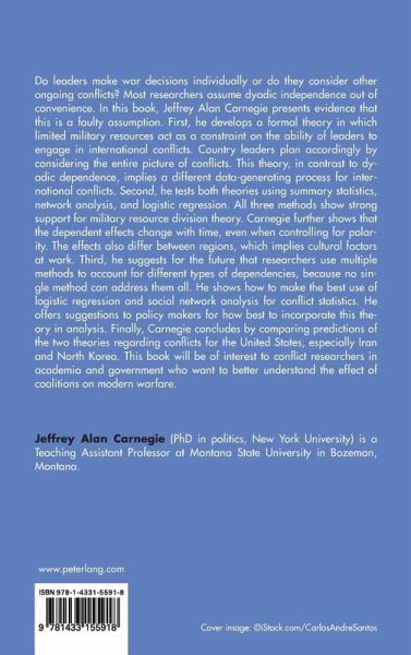 Do leaders make war decisions individually or do they consider other ongoing conflicts? Most researchers assume dyadic independence out of convenience. In this book, Jeffrey Alan Carnegie presents evidence that this is a faulty assumption. First, he develops a formal theory in which limited military resources act as a constraint on the ability of leaders to engage in international conflicts. Country leaders plan accordingly by considering the entire picture of conflicts. This theory, in contrast to dyadic dependence, implies a different data-generating process for international conflicts. Second, he tests both theories using summary statistics, network analysis, and logistic regression. All three methods show strong support for military resource division theory. Carnegie further shows that the dependent effects change with time, even when controlling for polarity. The effects also differ between regions, which implies cultural factors at work. Third, he suggests for the future that researchers use multiple methods to account for different types of dependencies, because no single method can address them all. He shows how to make the best use of logistic regression and social network analysis for conflict statistics. He offers suggestions to policy makers for how best to incorporate this theory in analysis. Finally, Carnegie concludes by comparing predictions of the two theories regarding conflicts for the United States, especially Iran and North Korea. This book will be of interest to conflict researchers in academia and government who want to better understand the effect of coalitions on modern warfare.