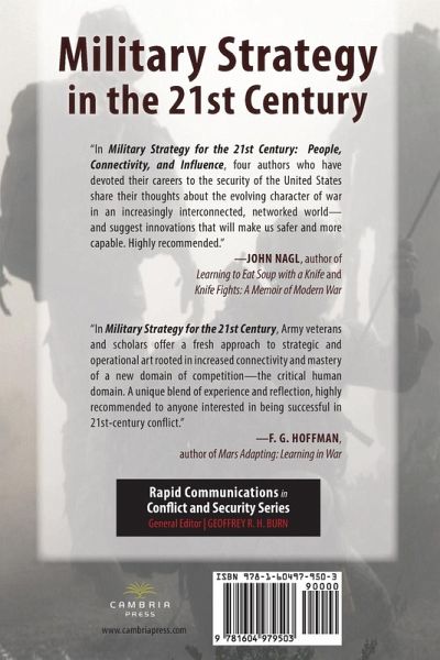 *This book is in the Rapid Communications in Conflict and Security (RCCS) Series (General Editor: Geoffrey R.H. Burn). The character of not only war but also strategic competition appears to be changing. Failing to adapt will result in further losses of blood and treasure as well as prestige and influence. Power withers when it proves frail. This book by Charles Cleveland, Benjamin Jensen, Susan Bryant, and Arnel David calls for the rethinking of how the U.S. national security community approaches population-centric warfare and strategic competition in the 21st century. Strategic advantage in the 21st century will emerge from mapping human geography in a connected world, leveraging key relationships, and applying a mix of unconventional and conventional methods that put adversaries on the horns of a dilemma. The authors outline a new approach to thinking about military art rooted in increasing connectivity and defining a new domain of competition, the human domain. In the 21st century, strategic advantage will emerge from how we engage with and understand people and access political, economic, and social networks to achieve a position of relative advantage that complements American military strength. These interactions are not reducible to the physical confines of the land domain, which tend to focus on geography and terrain features. They represent a web of networks that define power and interests in a connected world. The state that bests understands local contexts and builds a network around relationships harnessing local capacity is more likely to win the 21st century struggle for the flanks. Military power exercised through joint combined arms is no longer sufficient to compel adversaries or control populations. Just as conventional forces like those of the United States increased their ability for precision strike and lethal fires, competitors opted to shift strategic competition away from direct confrontations to an indirect clash of wills. The weak undermine the strong through mobilizing local populations—often through predation and manipulating grievances—to carry out insurgent attacks, terrorism, civilian massacres, propaganda campaigns and cyber-attacks. The site of this clash of wills, occurring predominantly in civilian populations and their relational networks as opposed to battlefields of old, reduces the U.S. military’s comparative advantage in combined arms maneuver. As a result, military art is practiced increasingly in a human domain. Military Strategy in the 21st Century makes the case that to be successful in these 21st century struggles, the military profession must recognize and organize for its role in these indirect conflicts and develop appropriate concepts that account for the need to gain a position of advantage in the human domain. Leading military powers like the United States must find a way to maneuver in an interconnected world of competing influence networks. America’s military needs to be part of a global security network optimized for 21st century influence campaigns backed by military force as opposed to fighting 20th century military campaigns loosely backed by information operations. This is an important volume for the military professional, academics who study political violence and security, and general reader interested in the changing character of strategy and conflict. The book would be useful in a range of classroom settings including Professional Military Education (PME), university classes on contemporary military practice and strategy, and graduate classes in security studies and international relations.