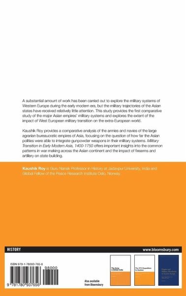 A substantial amount of work has been carried out to explore the military systems of Western Europe during the early modern era, but the military trajectories of the Asian states have received relatively little attention. This study provides the first comparative study of the major Asian empires' military systems and explores the extent of the impact of West European military transition on the extra-European world. Kaushik Roy conducts a comparative analysis of the armies and navies of the large agrarian bureaucratic empires of Asia, focusing on the question of how far the Asian polities were able to integrate gunpowder weapons in their military systems. Military Transition in Early Modern Asia, 1400-1750 offers important insights into the common patterns in war making across the region, and the impact of firearms and artillery.
