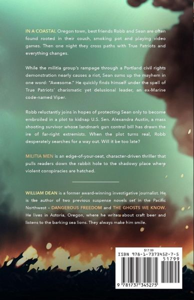 IN A COASTAL Oregon town, best friends Robb and Sean are often found rooted in their couch, smoking pot and playing video games. Then one night they cross paths with True Patriots and everything changes. While the militia group's rampage through a Portland civil rights demonstration nearly causes a riot, Sean sums up the mayhem in one word: "Awesome." He quickly finds himself under the spell of True Patriots' charismatic yet delusional leader, an ex-Marine code-named Viper. Robb reluctantly joins in hopes of protecting Sean only to become embroiled in a plot to kidnap U.S. Sen. Alexandra Austin, a mass shooting survivor whose landmark gun control bill has drawn the ire of far-right extremists. When the plot turns real, Robb desperately searches for a way out. Will it be too late? Militia Men is an edge-of-your-seat, character-driven thriller that pulls readers down the rabbit hole to the shadowy place where violent conspiracies are hatched.