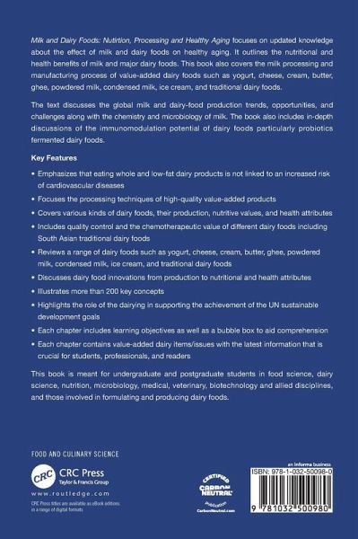 Emphasizes that eating whole and low-fat dairy products is not linked to an increased risk of cardiovascular diseasesFocuses the processing techniques of high-quality value-added productsCovers various kinds of dairy foods, their production, nutritive values, and health attributesIncludes quality control and the chemotherapeutic value of different dairy foods including South Asian traditional dairy foodsReviews a range of dairy foods such as yogurt, cheese, cream, butter, ghee, powdered milk, condensed milk, ice cream, and traditional dairy foodsDiscusses dairy food innovations from production to nutritional and health attributesIllustrates more than 200 key concepts Highlights the role of the dairying in supporting the achievement of the UN sustainable development goalsEach chapter includes learning objectives as well as a bubble box for the convenience of readersEach chapter contains value-added dairy items/issues with the latest information that is crucial for students, professionals, and readers
