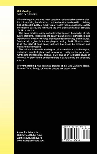 Milk and dairy products are a major part of the human diet in many countries. It is not surprising therefore that considerable attention is paid to obtaining the best possible quality of milk by improving the yield, compositional quality and hygienic quality, and minimizing the level of contaminants at all stages of milk production. This book provides easily understood background knowledge of milk quality problems. It identifies the quality parameters of significance, and explains what they are, why they are important and how they are measured. Practical help is given for the sampling and testing of milk. Most important of all, the value of good quality milk and how it can be produced and maintained are stressed. This volume is essential reading for dairy scientists and technologists, particularly microbiologists, food processors, quality control personnel, nutritionists and regulatory officials. It will also be an invaluable source of reference for practitioners and researchers in dairy farming and veterinary science.