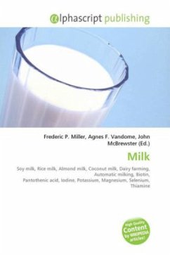 Milk - Soy milk, Rice milk, Almond milk, Coconut milk, Dairy farming, Automatic milking, Biotin, Pantothenic acid, Iodine, Potassium, Magnesium, Selenium, Thiamine, Vitamin A, Vitamin B12, Riboflavin, Vitamin D, Vitamin K, Lactose intolerance, Fat content of milk, Flavored milk, Soured milk, Milkman, Milk round, Milk float, Raw milk, Evaporated milk, Pasteurization, Condensed milk, Powdered milk, Fermented milk products, Babcock test, Bovine somatotropin, Casein, Cheese, Grain milk, Milk bottle