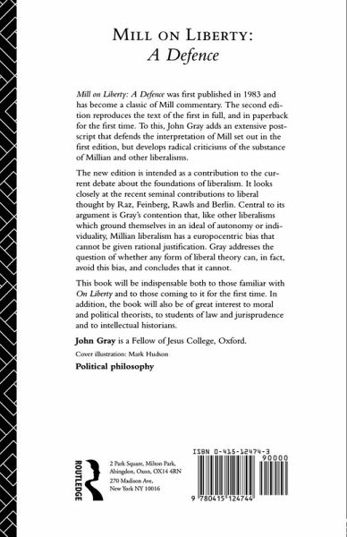 The new edition is intended as a contribution to the current debate about the foundations of liberalism, and it looks closely at the recent seminal contributions to liberal thought by Raz, Feinberg, Rawls and Berlin. Central to its argument is Gray's contention that, like other liberalisms that ground themselves on an ideal of autonomy or individuality, Millian liberalism has a Eurocentric bias that cannot be given rational justification. Gray addresses the question of whether any form of liberal theory, can, in fact, avoid the bias, and concludes that it cannot.