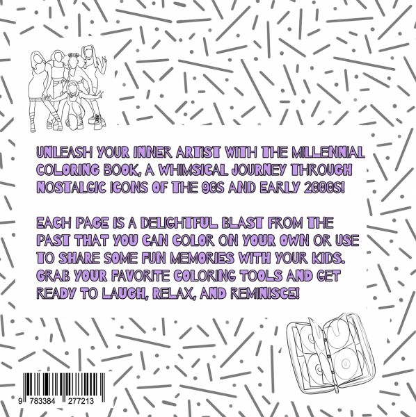 Unleash your inner artist with our Millennial Coloring Book, a whimsical journey through nostalgic 90s and early 2000s icons! Each page is a delightful blast from the past that you can color on your own or use to share some fun memories with your kids.Grab your favorite coloring tools and get ready to laugh, relax, and reminisce!