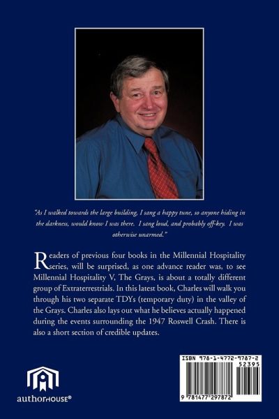 Readers of previous four books in the Millennial Hospitality series, will be surprised, as one advance reader was, to see Millennial Hospitality V, The Grays, is about a totally different group of Extraterrestrials. In this latest book, Charles will walk you through his two separate TDYs (temporary duty) in the valley of the Grays. Charles also lays out what he believes actually happened during the events surrounding the 1947 Roswell Crash. There is also a short section of credible updates.